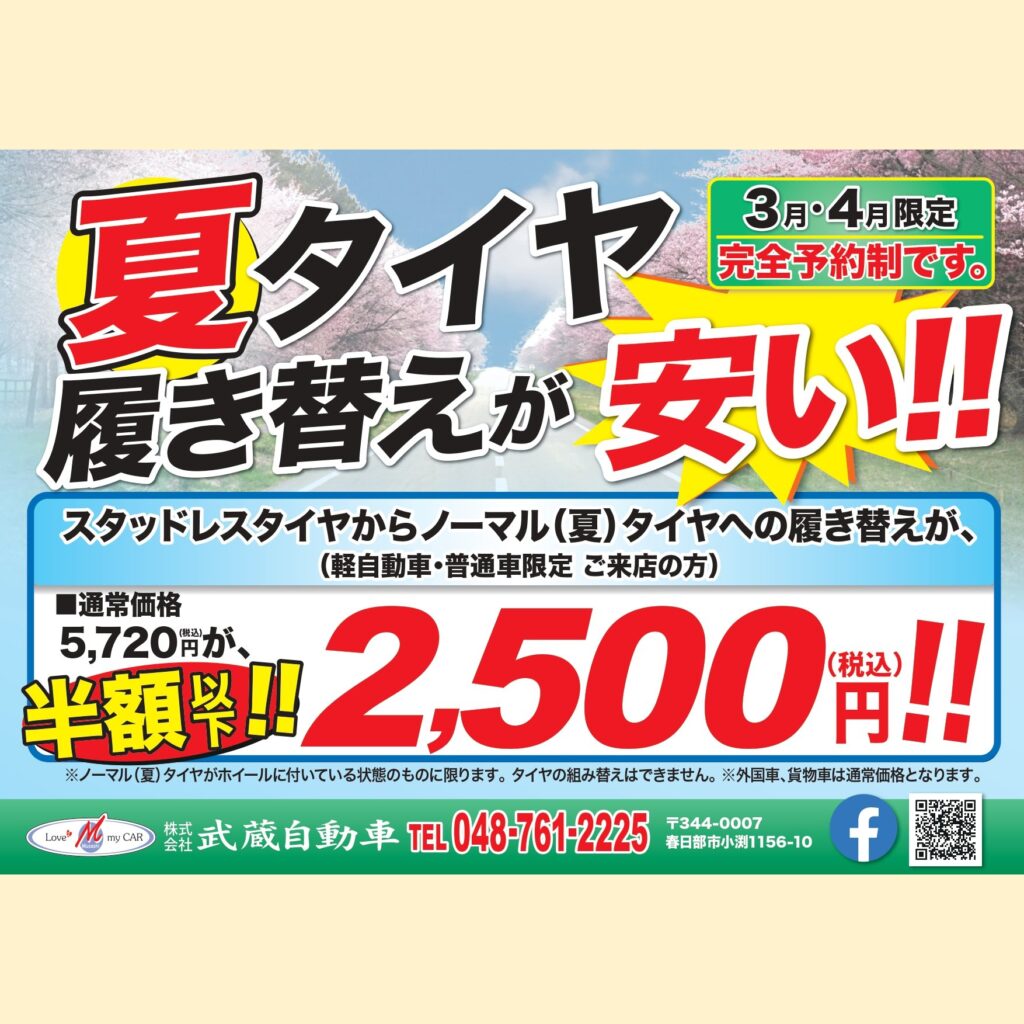 地域密着で営業している武蔵自動車から、春の限定キャンペーンのお知らせです。